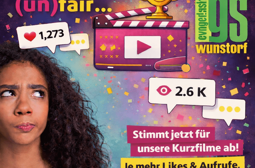 Liebe Schulgemeinschaft, Ihr habt es sicher schon über den Flurfunk und Plakate mitbekommen – insgesamt 8 Filme unserer Schule nehmen dieses Jahr am inklusiven Kurzfilmwettbewerb „ganz schön ...