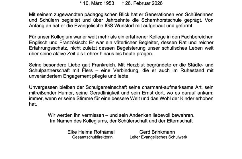Ab Montag bis zum 28. März (12 Uhr) finden die Anmeldetage für den neuen 5. Jahrgang an der Evangelischen IGS Wunstorf für das Schuljahr 2025/2026 statt. Hier geht es zur online Anmeldung: die ...