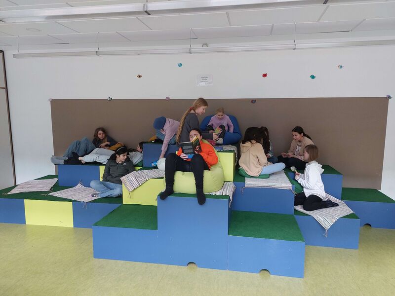 Gestern in der zweiten großen Pause war es nun soweit: die durch viele fleißige Hände gestaltete RUHE-INSEL wurde eröffnet. Dieser Raum, der zu normalen Unterrichtszeiten weiter als Differenzierungsraum dient, kann nun in der ersten und zweiten großen Pause von den Schüler*innen des 5. und 6. Jahrgangs ganz neu genutzt werden. Hier können sie auf Kissen und Sitzsäcken entspannen, in aller Ruhe ein Buch lesen oder Gesellschaftsspiele spielen. Alles aber in ganz ruhiger Atmosphäre, denn so manch ein Schüler oder eine Schülerin benötigt diese ruhige Auszeit im doch oftmals lauten und unruhigeren Schulalltag.