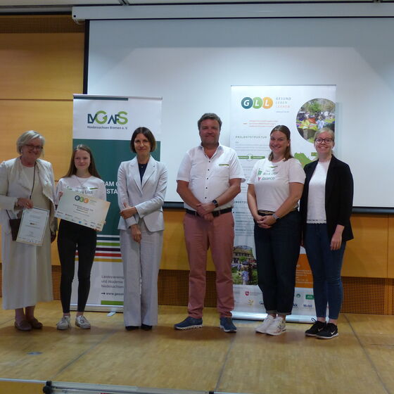 Nach 3 Jahren Projektphase beendet die Evangelische IGS Wunstorf das Gesund-Leben-Lernen-Konzept (GLL). Hierfür haben unsere Schulleiterin Elke Helma Rothämel, die Schülerin Leonie Opitz und die Projektleitung Jennifer Stania am Dienstag, den 03.09.2024 unsere Schule auf dem GLL-Richfest in Hannover repräsentiert. Vor Ort wurden der GLL-Prozess sowie die bisherigen Ergebnisse präsentiert und ein Ausblick für die weitere Gesundheitsarbeit unserer Schule gegeben. Zudem gab es zahlreiche Möglichkeiten, sich mit anderen Schulen auszutauschen und zu vernetzen.