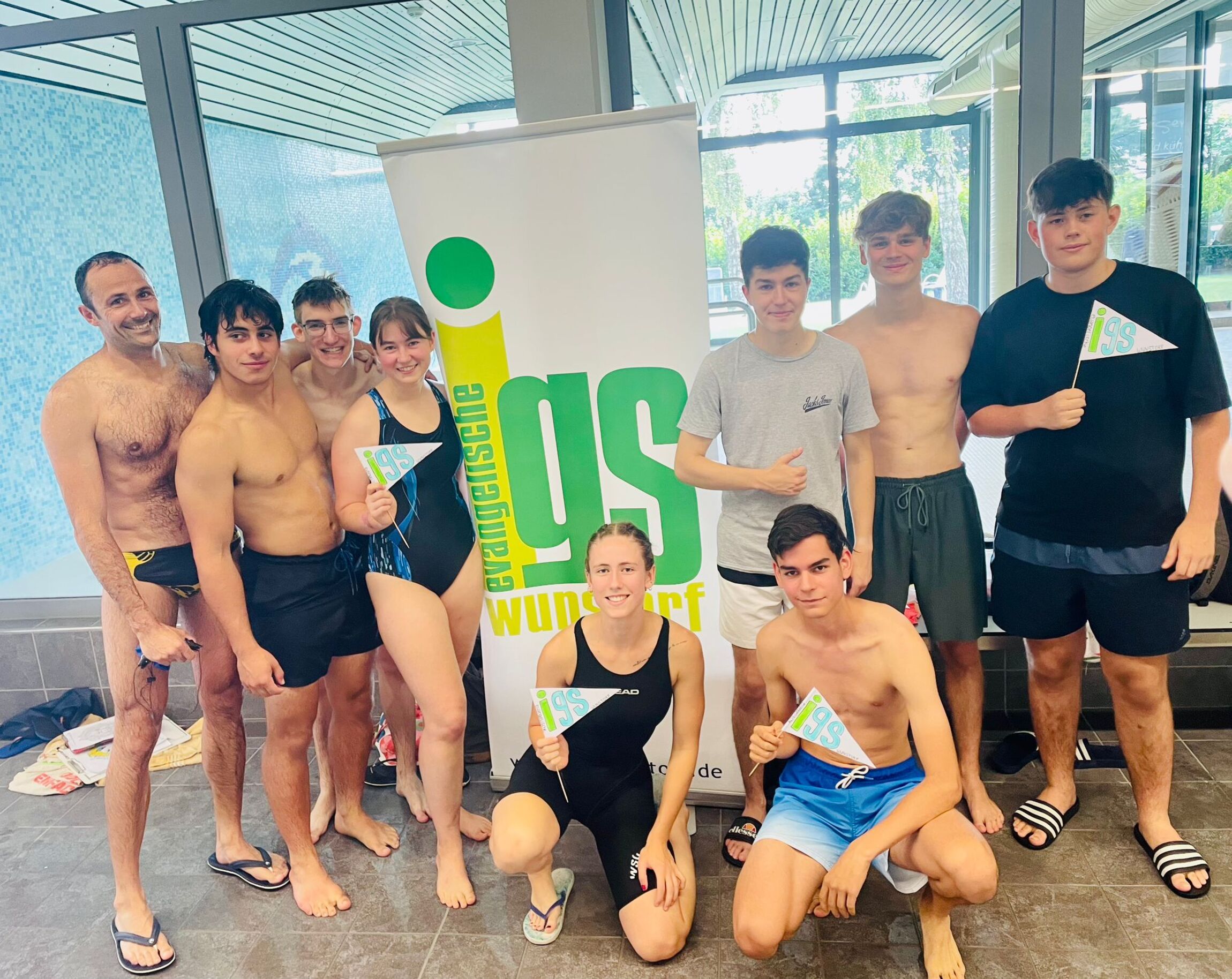 Am 30. August 2024 nahm der Schwimmkurs der 13. Klasse an den Stadtmeisterschaften im Schwimmen teil. Die Organisation und Betreuung lagen in den Händen von Herrn Dr. Heinicke und der FSJlerin Lea Apel.