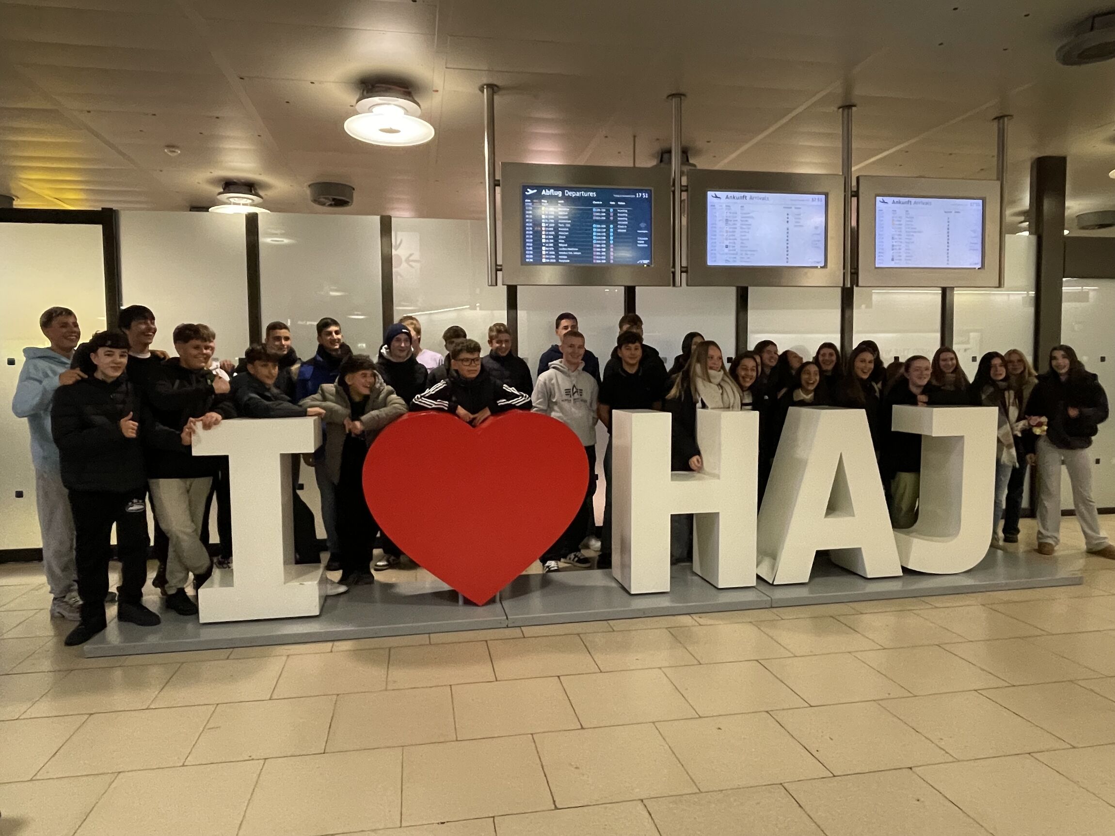 Zum Ausklang der Woche begann dann der letzte Tag mit einer Doppelstunde Englisch und endete mit einer Feedbackrunde und einem Abschlussfoto vor unserem Schulgebäude. Die positiven Rückmeldungen der spanischen Gäste bestätigten, wie gelungen diese Woche war. Am Nachmittag hieß es am Flughafen Langenhagen Abschied nehmen und für unsere Austauschgäste die Rückreise nach Barcelona anzutreten.