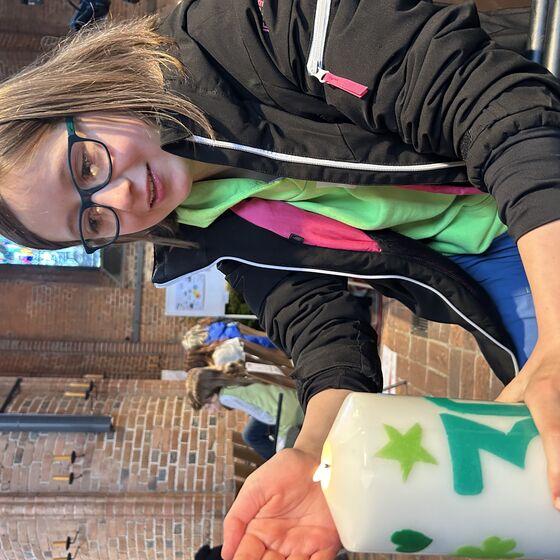 Mit großem Engagement haben Schüler*innen der Jahrgänge 6-10 unserer Schule hierfür einen tollen Film gedreht, der ein buntes Mosaik des Schullebens einer Schule in evangelischer Trägerschaft zeigt. Als Geschenk haben unsere Schüler*innen der pädagogischen Geschäftsführerin, Frau Dr. Ina Döttinger eine selbst gebastelte Kerze überreicht.