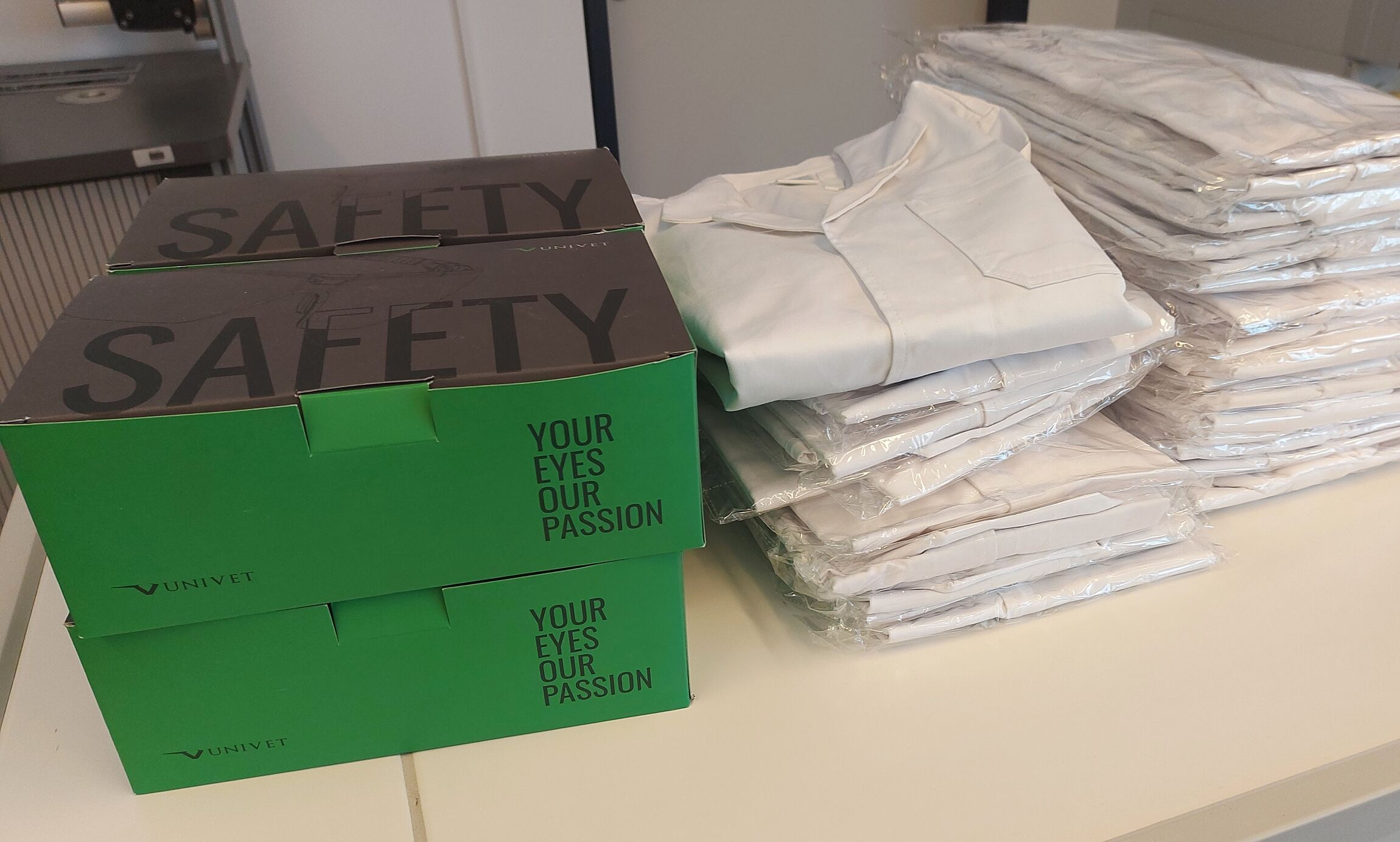 Dank eine großzügigen Spende der Rut- und Klaus-Bahlsen-Stiftung in Hannover und mit Unterstützung unseres Fördervereins steht nun im Schülerlabor ein Paket mit 40 Laborkitteln und 40 Schutzbrillen für Kinder bereit, die natürlich sofort anprobiert werden mussten. Aber wofür brauchen wir diese?
