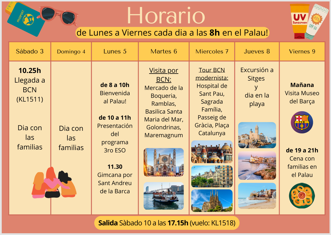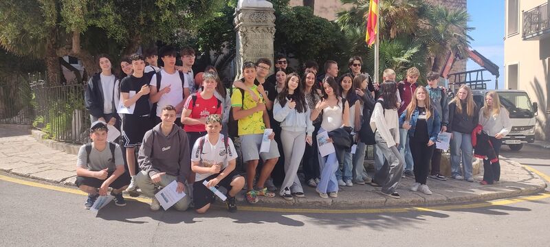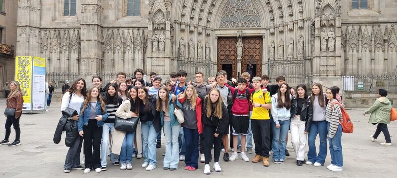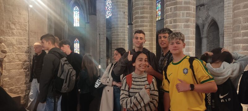 Am ersten Schultag am Montag wurden unsere Schüler*innen im Institut El Palau, ihrer Austauschschule von den spanischen Lehrkräften begrüßt. Es folgte eine interessante Präsentation über das spanische Schulsystem und den Vorort von Barcelona. Unser spanischer Kollege José bot uns in einem digitalen Quiz erste Einblicke in die Gemeinsamkeiten und Unterschiede zwischen Deutschland und Spanien. Der erste Schultag endete dann mit einer kurzen Stadtrallye durch Sant Andreu de la Barca, in der die Gruppe gemeinsam mit den Spanier*innen Aufgaben auf Spanisch lösen, gemeinsam Fotos von berühmten Orte oder kurze Einkaufsgespräche führen mussten.