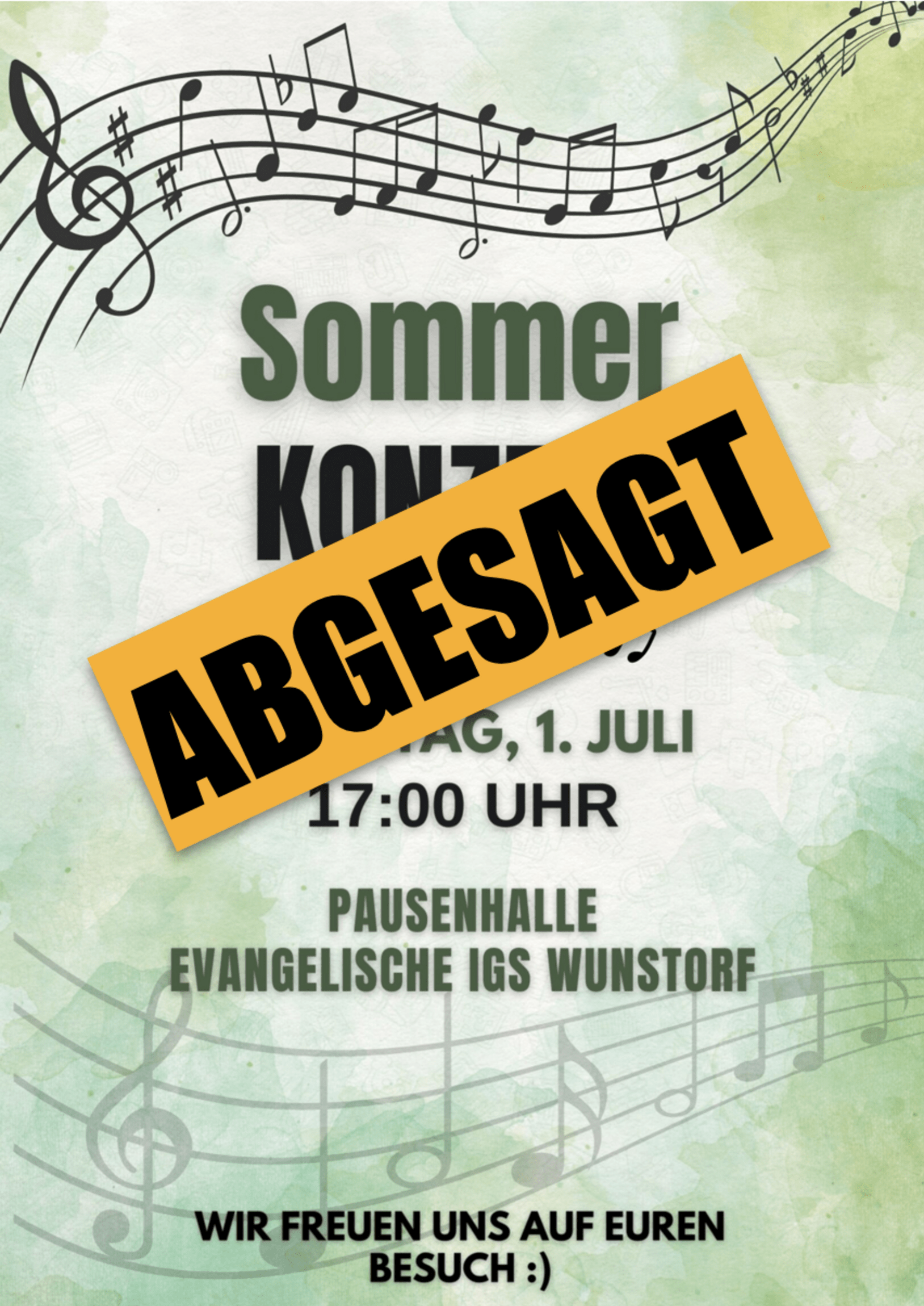 Aufgrund einer Hitzewarnung der Region müssen wir das morgige Sommerkonzert (1. Juli) leider absagen – auch wenn wir uns sehr auf das traditionelle Sommerevent gefreut haben und bedauern, dass alle Schüler*innen in ihren Ensembles nun nicht zeigen können, was sie mit viel Engagement einstudiert haben.