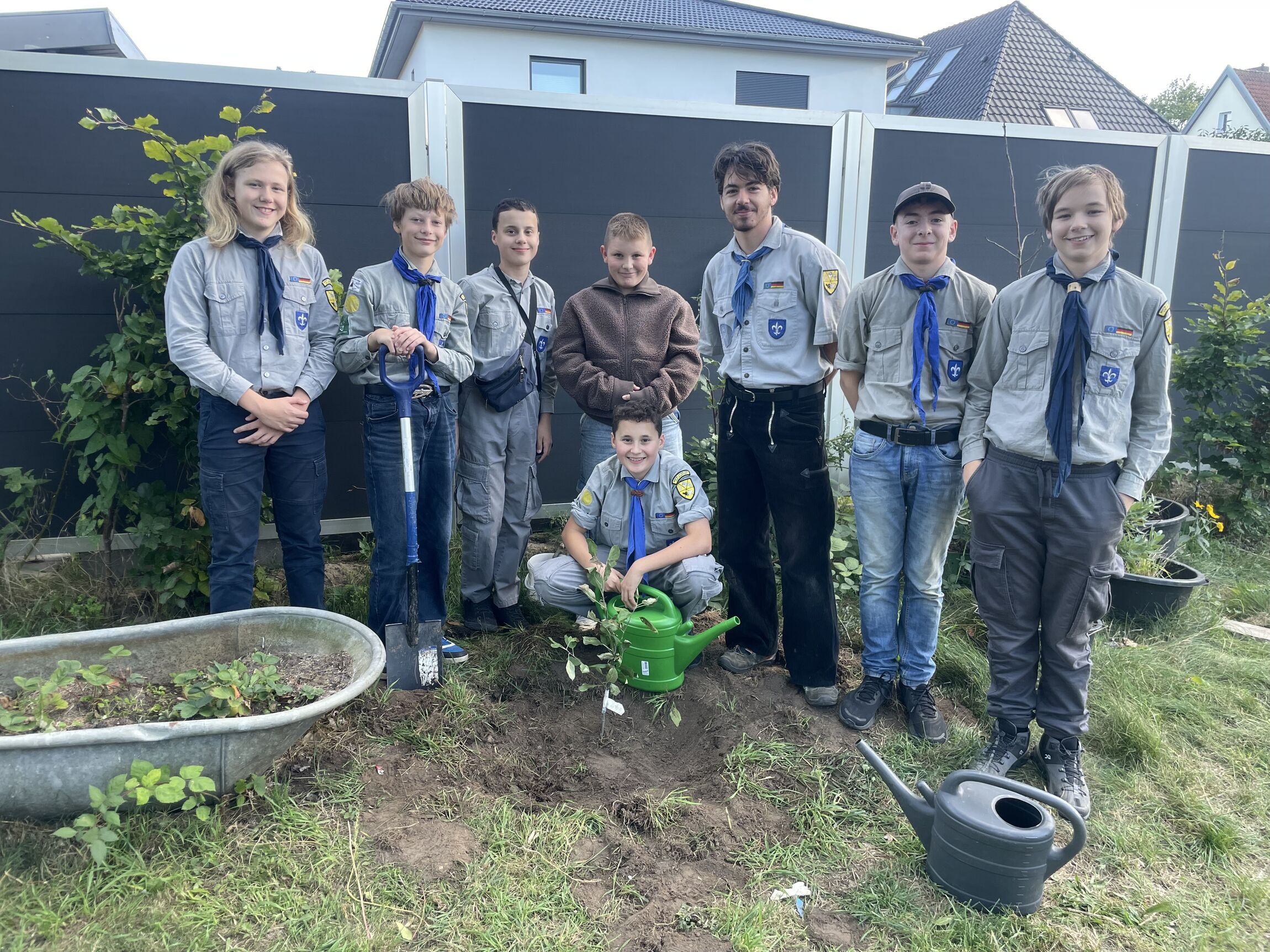 Die Pfadfinder Wunstorf haben einen neuen Baum in unserem Schulgarten gepflanzt.