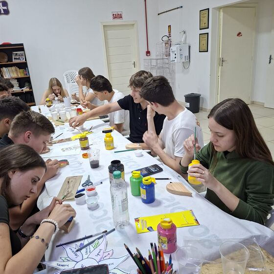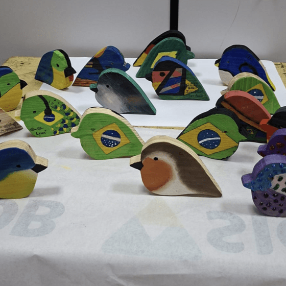 Nach einem wirklich guten und unterhaltsamen Mittagessen sind wir dann wieder in die Gruppe gegangen und haben uns weiter ausgetauscht, bis wir zu unser nächsten ,,Aufgabe “ kamen. Spätestens dort konnte jeder der Kreativität freien Lauf lassen! Denn unsere Aufgabe bestand darin, mit unserer Austausch-Partner*in einen Vogel aus Holz zu gestalten, bei dem jede Partner*in jeweils eine Seite von den beiden Vögeln bemalen konnte. Die Vögel waren dankenswerterweise von Herrn Opper extra für die Reise zugeschnitten worden. Bei der Interpretation der Gestaltung sind viele verschiedene Designs entstanden, z.B. ein Vogel mit der deutschen Flagge auf der einen und der brasilianischen Flagge auf der anderen Seite.