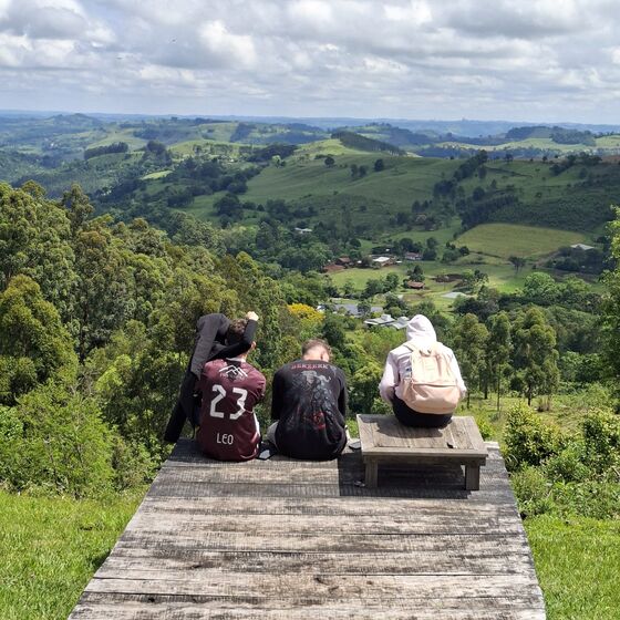 Als wir dann wieder bei den Bullis waren sind wir weiter zu einem Aussichtspunkt gefahren, wo es eine große Schaukel gab, mit der man ein kleines Stück über den Hügel schaukeln konnte. Anschließend haben wir noch Fotos gemacht und sind zurück zum ArLivre-Grundstück gefahren. Dort gibt es auch einen kleinen Shop mit kleinen Souvenirs.