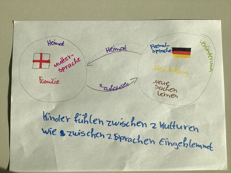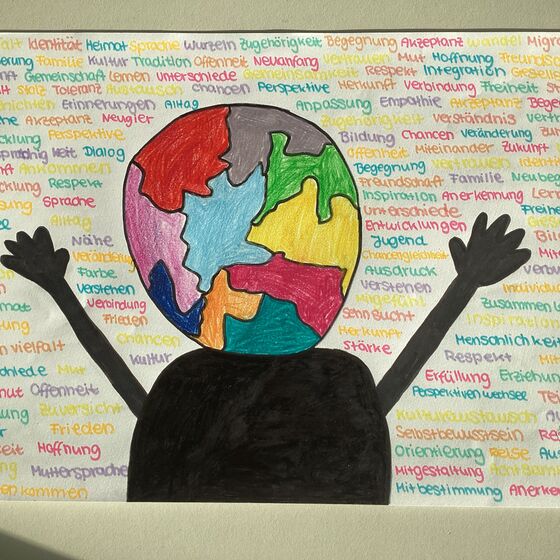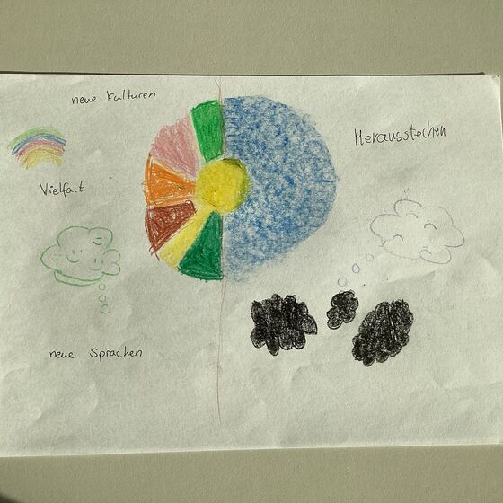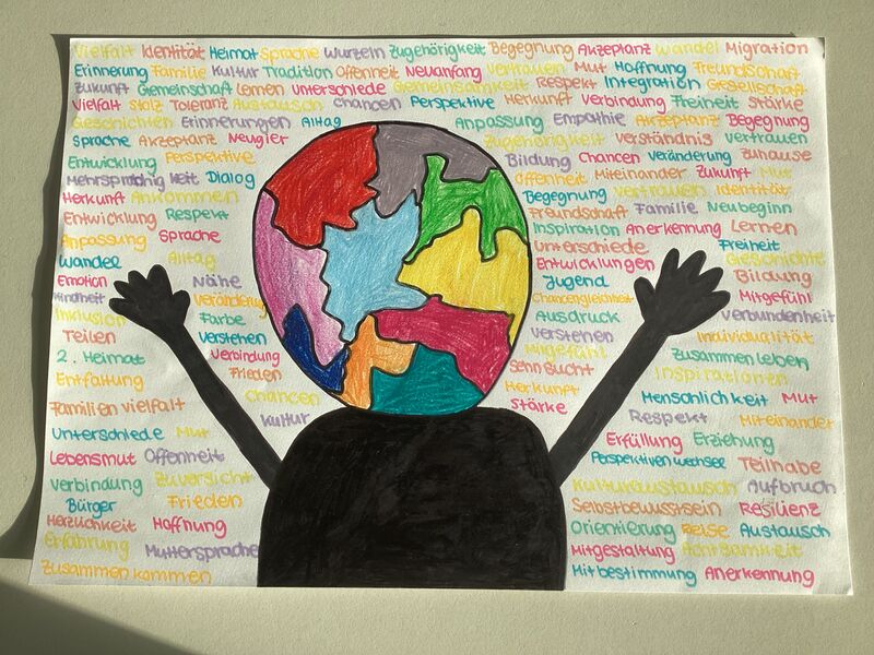 Was bedeutet es, in einer Migrationsgesellschaft aufzuwachsen? Achtzehn Schüler*innen des WPK 3 Pädagogik sind dieser Frage nachgegangen, über selbst geschaffene Bilder (allein, zu zweit oder in kleinen Teams). Mit diesen Bildern laden wir euch ein, eure persönliche Antwort auf die Frage zu finden. Selbstverständlich freuen wir uns über eure Gedanken. Sprecht uns gern an, immer donnerstags sind wir in der 5./6. Stunde im Raum 02.17 zu finden." (Petra Weilbacher – für den einen Pädagogikkurs in Jg. 9)