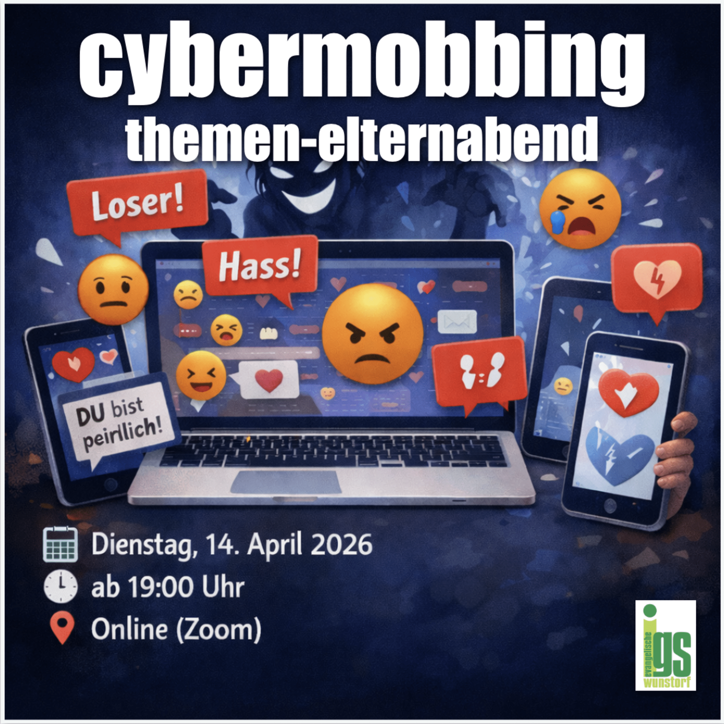 Unterstützend dazu findet am Vormittag desselben Tages bei der gleichen Referentin ein Schüler-Workshop statt. Sehr gerne können Sie diesen Elternabend auch gemeinsam mit Ihren Kindern ansehen: Alle Schülerinnen und Schüler sind ebenfalls herzlich eingeladen!
