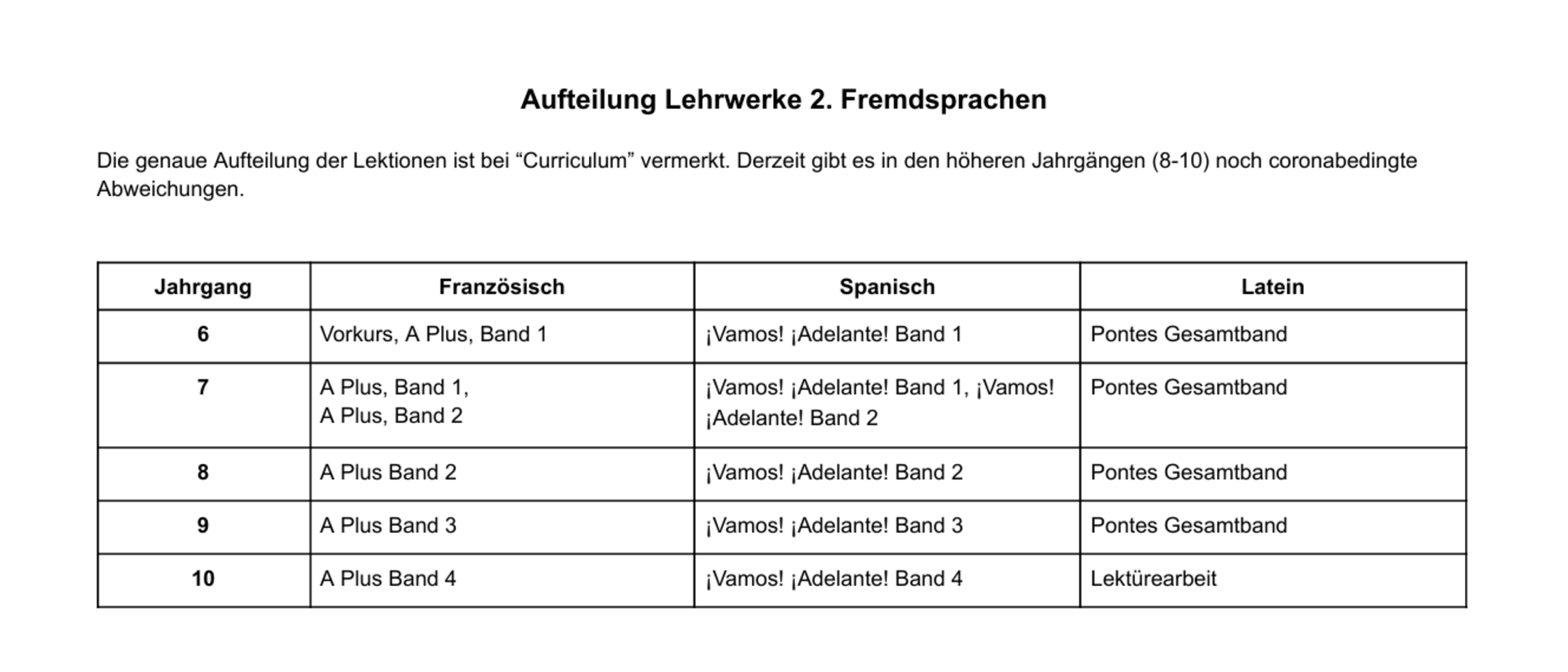 Unsere Wege in die 2. Fremdsprachen sowie die Aufteilung der Lehrwerke haben wir im Folgenden aufgeführt. Bei weiteren Fragen oder Beratungsbedarf, zögern Sie nicht, uns anzusprechen oder anzuschreiben.